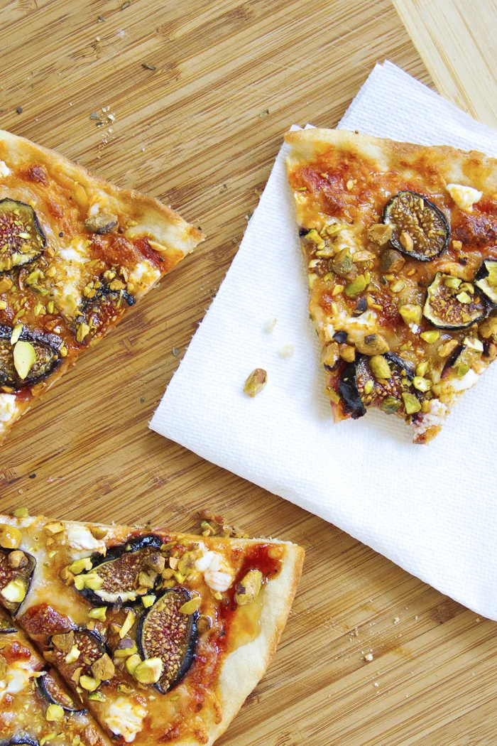 Fig Pizza with Goat Cheese, Pistachios and Honey